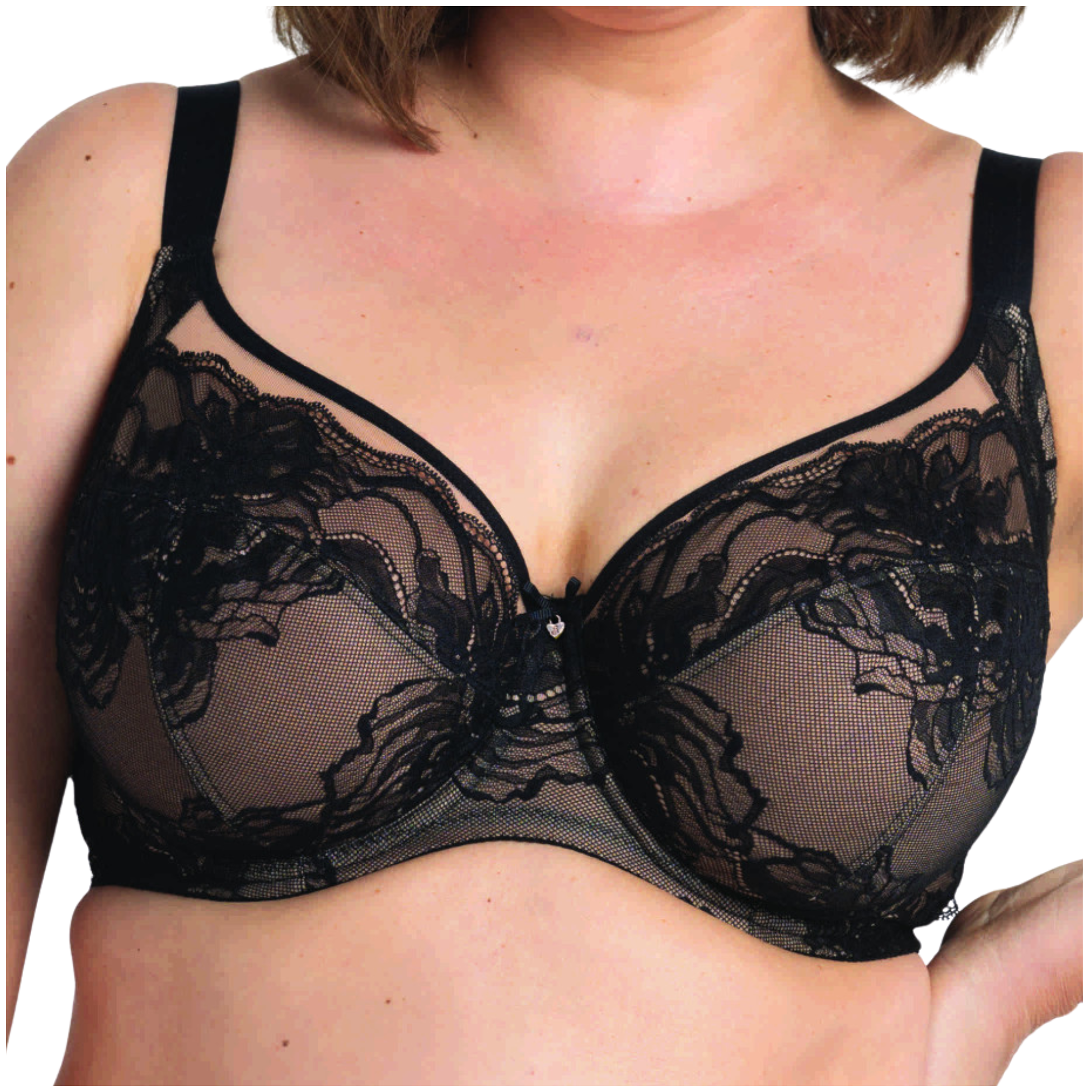 Miękkie, głębokie miseczki o konstrukcji typu full cup w pełni okalają piersi. Piersi są zebrane i uniesione. A910 posiada niższy mostek, dzięki czemu piersi są mocniej wyeksponowane.