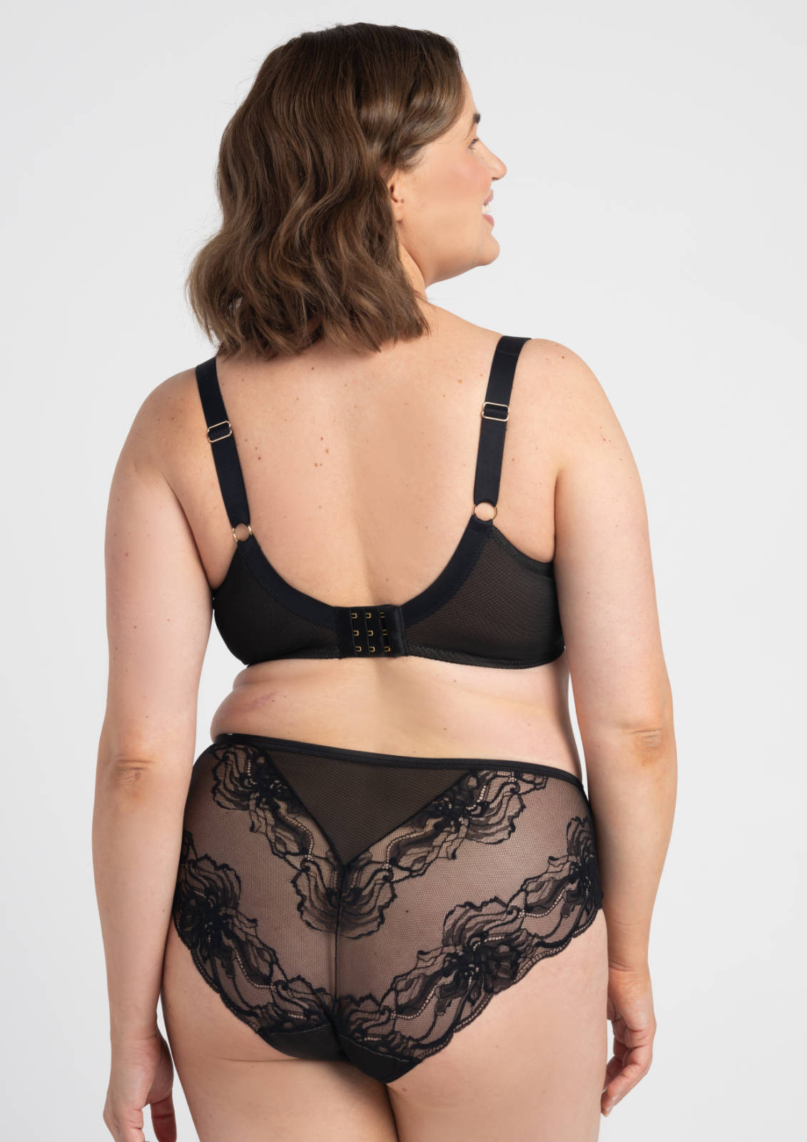 Na zapięcie biustonosza składają się trzyrzędowe haftki w konfiguracji 3x3, tak byś mogła dobrać obwód w zależności od potrzeby. Trójstopniowe regulowanie obwodu to po prostu wygoda.