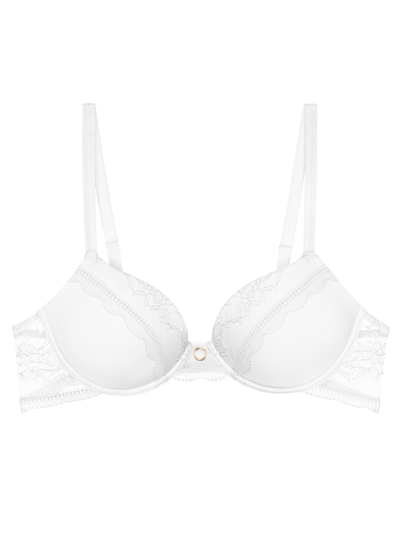 Usztywniane, termicznie formowane miseczki z niskim mostkiem. Gładkie miseczki nie odznaczają się pod ubraniami.