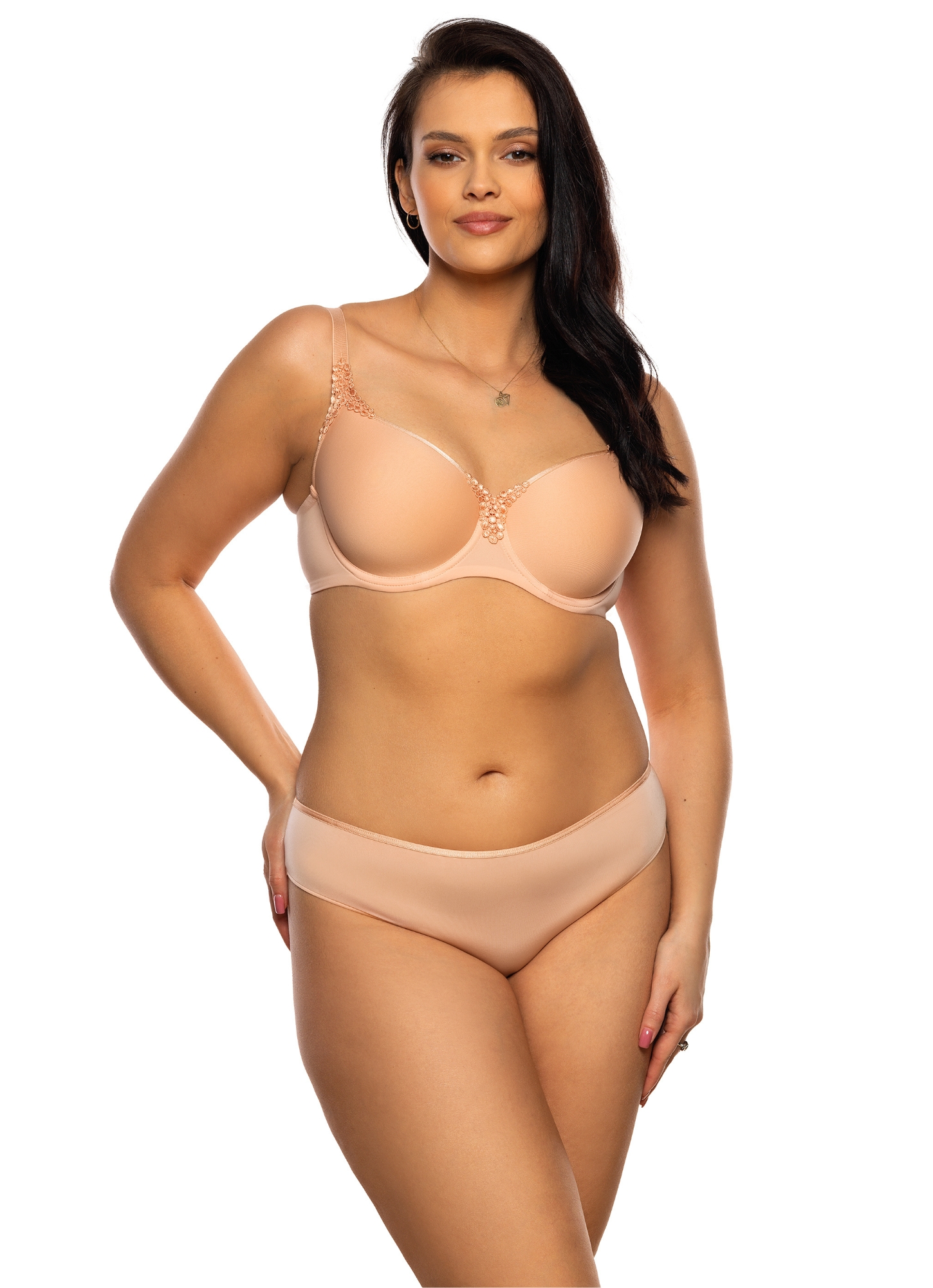 Biustonosz sprawdzi się idealnie na drobniejszym, średnim lub większym biuście. Pięknie zbierze mniej jędrne piersi, unosząc je i modelując w naturalny sposób.